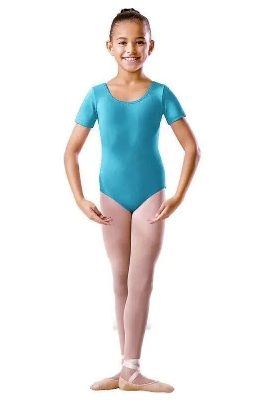 Acest body de bază cu mânecă scurtă este alegerea ideală pentru balerinele începătoare. Confecționat dintr-un material plăcut din bumbac, oferă acoperire confortabilă și libertate de mișcare atât în timpul antrenamentelor, cât și al spectacolelor. Decolteul rotund, atât în față cât și la spate, conferă modelului un aspect clasic.