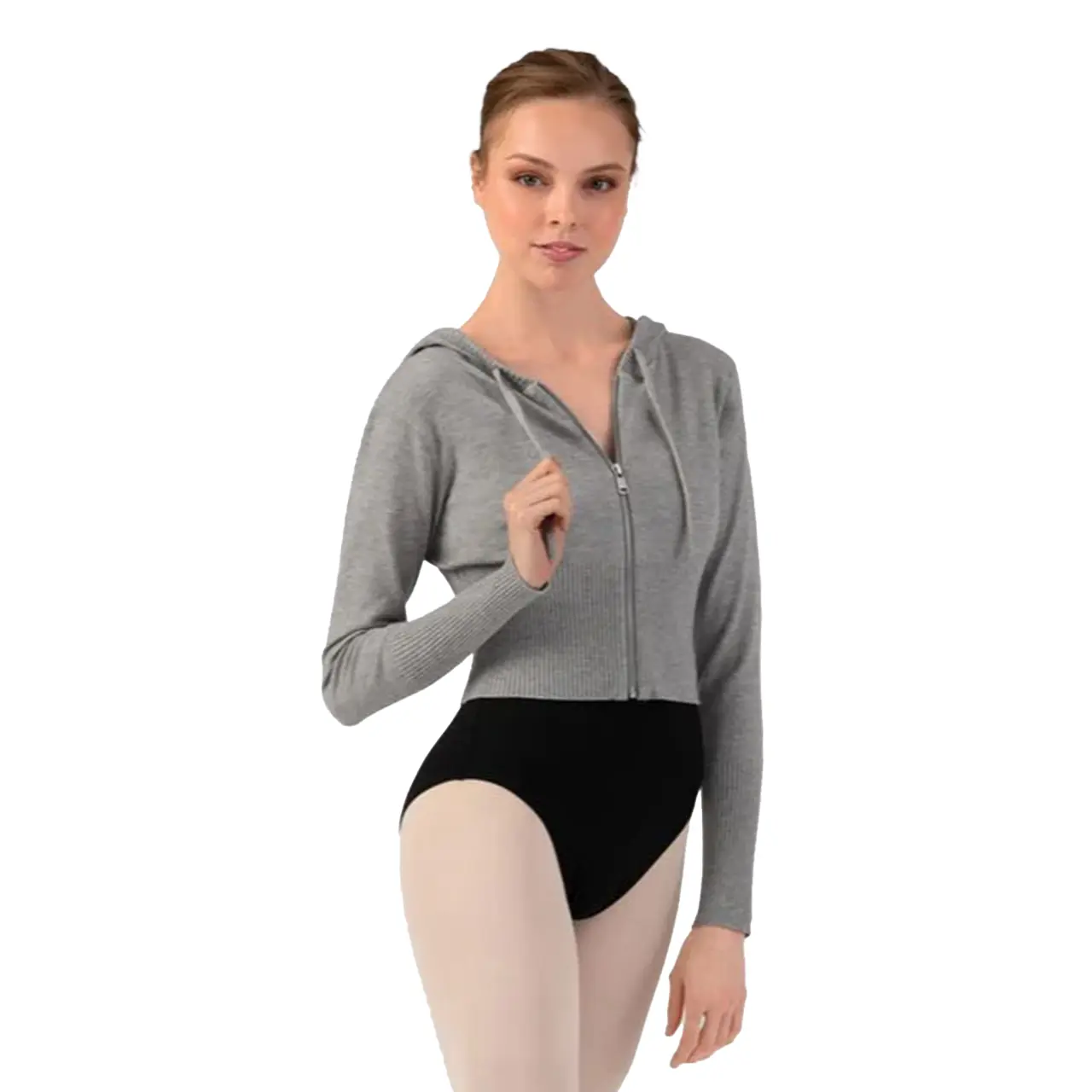 O combinație perfectă de stil și confort într-o singură piesă! Bloch Cropped Knit Full Zip Hoodie este un hanorac scurt, modern, cu fermoar, conceput pentru dansatoare, dar potrivit și pentru purtare zilnică. Țesătura ușoară și respirabilă oferă o căldură plăcută fără a limita mișcarea – ideală pentru purtare în straturi înainte de antrenament, după acesta sau în timpul unei zile obișnuite.