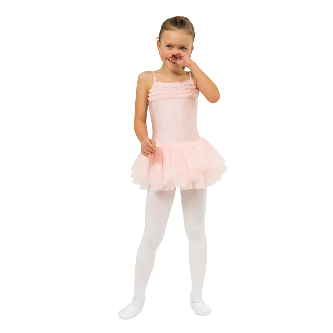 Rochița include o fustiță tutu alcătuită din trei straturi de șifon 100%, care arată delicat și vaporoasă – exact așa cum se cuvine unei adevărate balerine.
