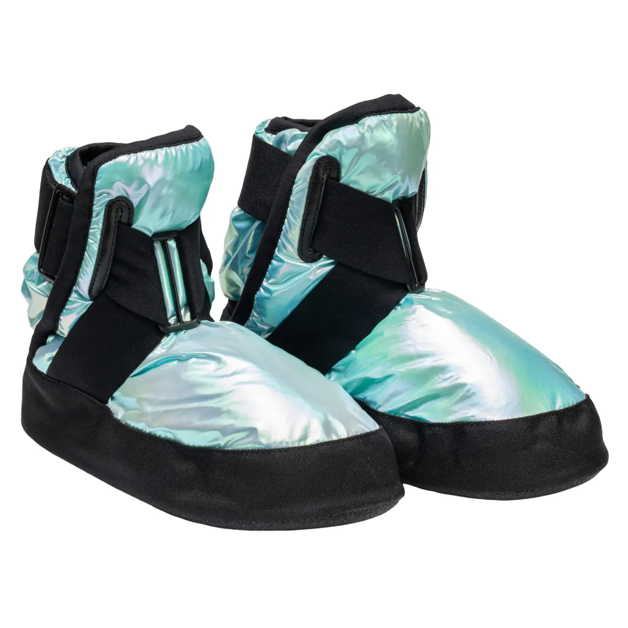 Talpa antiderapantă, moale și căptușită asigură un contact stabil cu solul și o distribuție uniformă a greutății, fiind ideale pentru deplasarea în sala de dans. Datorită umpluturii ușoare și călduroase, mențin picioarele calde fără a limita libertatea de mișcare. Suprafața metalică lucioasă conferă booties-urilor un aspect elegant, glam, iar noile variante de culoare permit asortarea lor cu orice ținută de dans.