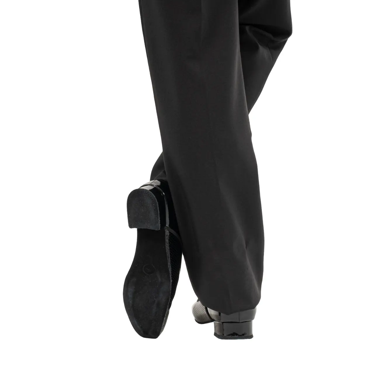 Întreaga talpă, inclusiv tocul, este acoperită cu piele întoarsă (suede), care oferă aderență ideală și o alunecare controlată pe ringul de dans.