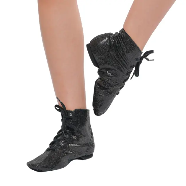 Pantofi de jazz extra-elegant, strălucitori. Aceste genți de jazz sunt la gleznă. Pentru a redresa arcul picior, producătorul a ales o tălpită separată.