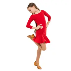 Geri - rochie pentru fete dans latino. Materialul ei flexibil oferă libertate de mișcare. Croiala asimetrică este elegantă. Un umăr rămâne liber, în timp ce celălalt umăr cu mânecă lungă adaugă rafinament și eleganță aspectului. Croiala uşor îngustată în talie accentuează silueta, iar micile fante pe laterale permit mişcarea liberă a picioarelor. Primești și chiloți în aceeași culoare cu rochia. În sezonul mai rece, le puteți adăuga șosete (supramâneci), care vă vor menține picioarele calde. Aceste detalii coordonate vă vor oferi un sentiment de încredere pe ringul de dans.