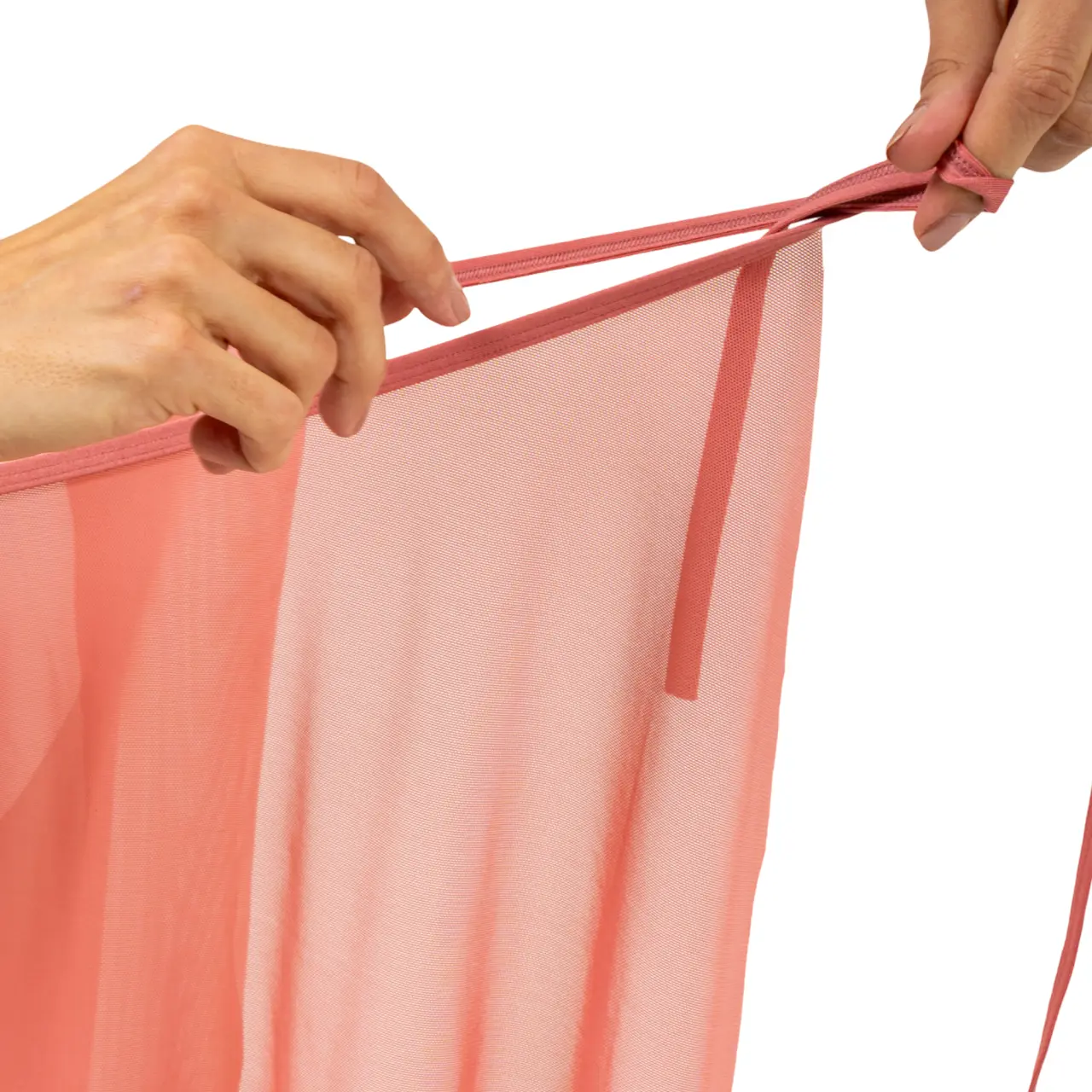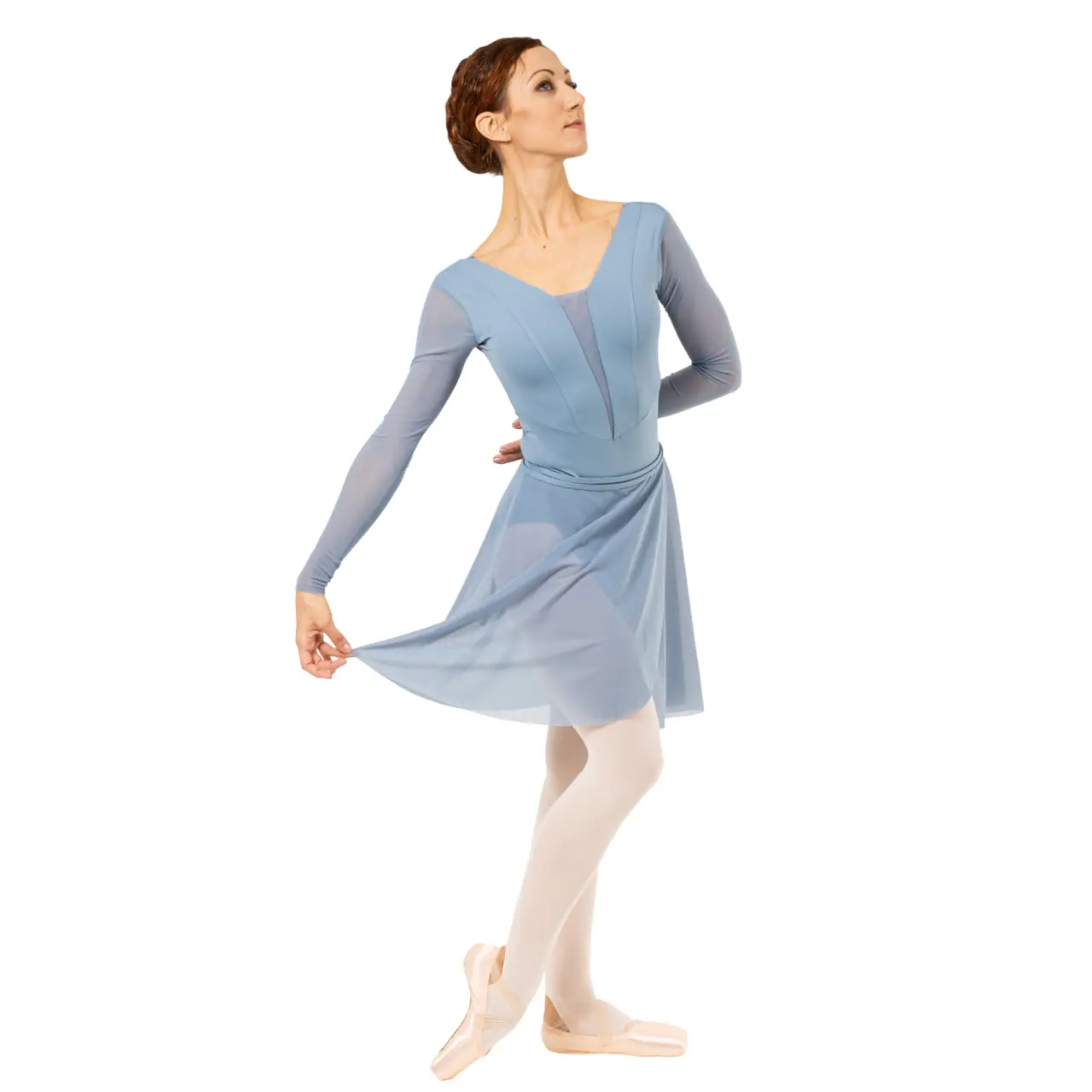 Realizată din plasă semitransparentă, cade grațios pe corp și evidențiază fiecare mișcare, adăugând farmec și grație prezentării dumneavoastră de dans.
